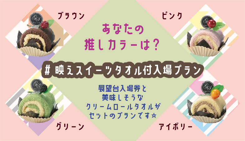 ※3階展望台入場券売り場で「スイーツタオル付プラン」希望とお伝えください。